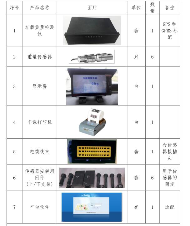 散裝飼料運輸車車載稱重系統(tǒng)配置清單:
