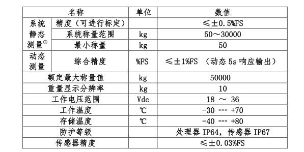 散裝飼料運輸車車載稱重系統(tǒng)技術(shù)參數(shù):