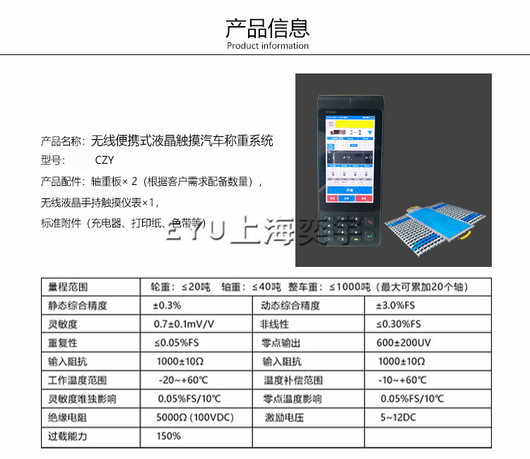 無(wú)線便攜式軸重儀基本參數(shù)信息:
