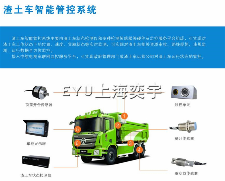 渣土車智能管控稱重系統(tǒng)主要由渣土車狀態(tài)檢測(cè)儀和多種檢測(cè)傳感器等硬件及監(jiān)控服務(wù)平臺(tái)組成,可實(shí)現(xiàn)對(duì)渣土車工作狀態(tài)下的位置、速度、貨廂狀態(tài),重量等實(shí)時(shí)監(jiān)測(cè),可實(shí)現(xiàn)對(duì)渣土車相關(guān)資質(zhì)審批、路線規(guī)劃、違規(guī)監(jiān)測(cè)、運(yùn)行數(shù)據(jù)、是否超載全方位監(jiān)控。