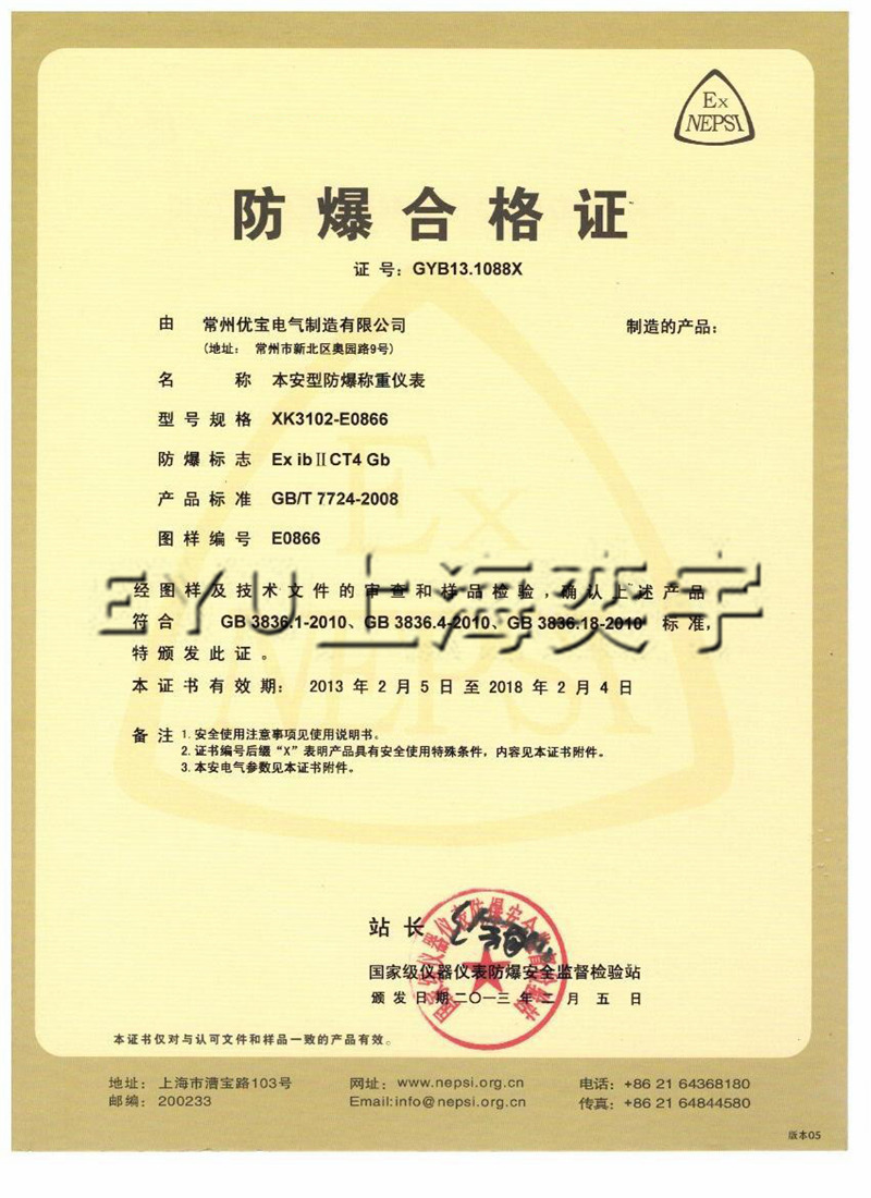 防爆稱重系統(tǒng)防爆標(biāo)志為Ex ib II C T4/T5,防爆合格證號GYB071360。