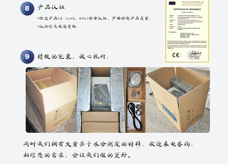與*烘箱加熱法相比,鹵素加熱可以*短時間內(nèi)達到*大加熱功率,在高溫下樣品快速被干燥,其檢測結(jié)果與國標(biāo)烘箱法具有良好的一致性,具有可替代性,且檢測效率遠遠高于烘箱法。一般樣品只需幾分鐘即可完成測定。且操作簡單,測試準(zhǔn)確,分別可顯示水分值、干燥值、測定時間、溫度值、等數(shù)據(jù)。并具有與計算機,打印機連接功能。