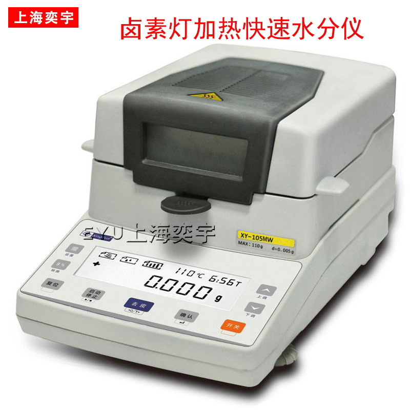 XY-MW系列鹵素?zé)艏訜?span>水分測定儀,采用鹵素?zé)魺峤庵亓吭?,是一種快速的水分檢測儀器。水分測定儀在測量樣品重量的同時,鹵素?zé)艏訜釂卧退终舭l(fā)通道快速干燥樣品,在干燥過程中,水分儀持續(xù)測量并即時顯示樣品丟失的水分含量%,干燥程序完成后,*終測定的水分含量值被鎖定顯示。