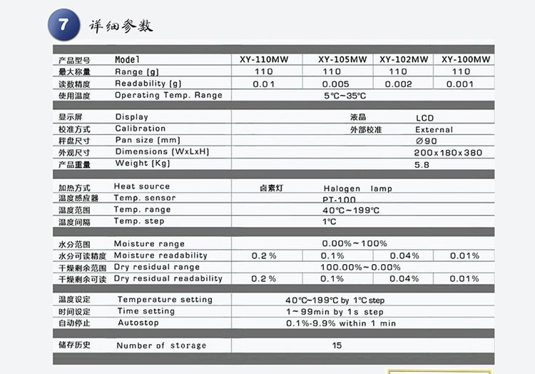 XY-MW系列鹵素?zé)艏訜崴譁y定儀技術(shù)參數(shù):