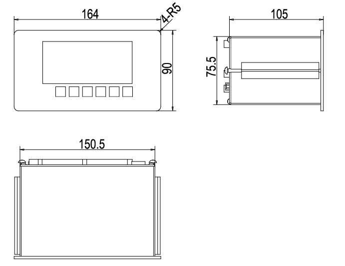 ◆外型尺寸 機(jī)殼:164×90×105 (mm)(寬×高×深)